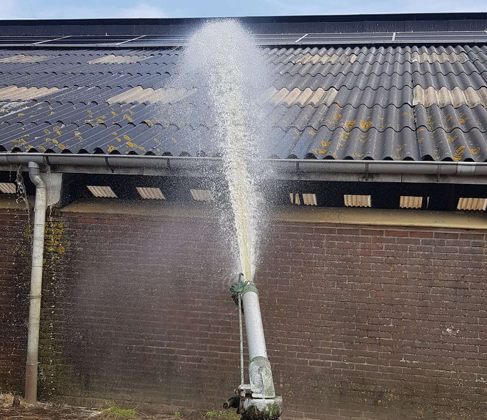 De koeien van Geertjan Kloosterboer uit Oxe (OV) vinden de hogedrukspuit heerlijk.