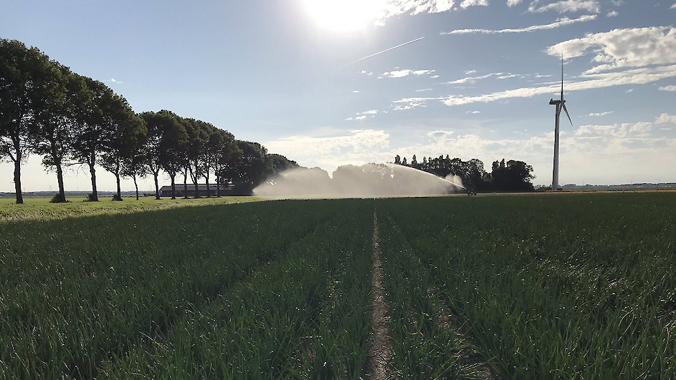 Zijn Groningse collega Cor Biemond heeft ook last van de droogte. „De uien kunnen wel wat vocht gebruiken, dus toch maar aan het beregenen", schrijft de akkerbouwer op Twitter